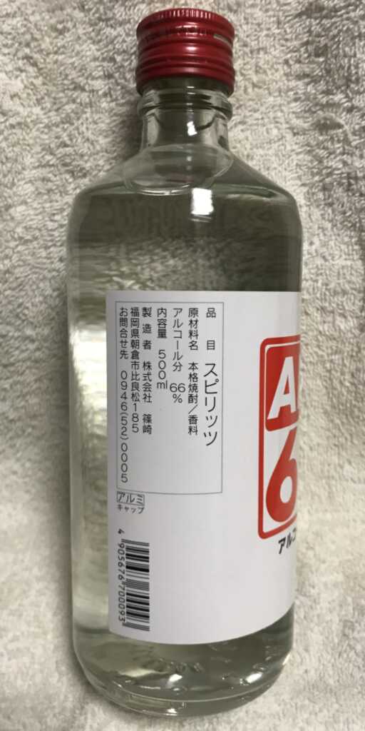 ALC66を飲んでみた。 投稿者:鶴鴇屋 徳明 投稿公開日:2020年6月6日 投稿カテゴリー:ブログ『私がそれを買った理由』 / 飲食関連 投稿コメント:0件のコメント ――焼酎ベースの、『飲んで良し、消毒に良し』な酒。 Facebook Twitter 以前の記事で、ゴールデンウィークの期間中にスピリタスを色々な飲み方で飲んでみた件について書いた。 今回は、スピリタス以外の『飲んで良し、消毒に良し』な酒のレビューとして、『ALC66』について書く。 この『ALC66』、新型コロナウイルス対策として販売される様になった『消毒にも使える酒』のうち1つであり、焼酎がベースとなっている。 私は、近所の酒屋さんのうち1つでこれを買った。1本500ml・税込1,540円。 ネットショッピングでも、『ALC66』1本500mlを1,500円~2,000円前後で買える。(2020/6/6 現在) 例によって、まずは少量を直接飲んでみた。目分量で約1cc。――スピリタスほどではなかったが、やはり舌と喉に強い熱感を感じた。 ショットグラス1杯分であっても、一口で飲み干すのに危険を感じるレベルだ。 だが、味は悪くない。「辛口の焼酎を『純化』したらこんな感じかな?」と思った。(※)(※このくだりを書いていて、東方Projectのキャラクター・『純狐』の『純化する程度の能力』を連想した。 東方Project世界を創造した『神主』ことZUN氏がこのALC66を飲んだとしたらどんな感想を述べるか、ちょっと聞いてみたいと思う) ALC66を酸味の強い柑橘系の強炭酸飲料で割ったら美味しそうだとも思ったので、実際にやってみた。 「ALC66:キレートレモン ダブルレモン」=「1:9」の比率で割ってみる。 悪くない。焼酎の味わいとレモンの味わいが合わさり、グレープフルーツ酎ハイに似た感じになった。 もちろん、消毒にも使ってみた。 少しばかり焼酎の匂いがするが、私は気にしなかった。――この辺りは、人によって許容できるかどうかが分かれるかもしれない。 ともかく、ALC66を製造・販売する株式会社篠崎さんを応援する意味合いも有って、本記事を書いた次第である。 タグ: ALC66, レビュー, 感想 その他の記事を読む 前の投稿スピリタスを飲んでみた。 おすすめ 『私がそれを買った理由』について 2019年12月15日 今、映画『サロゲート』を見たくなった理由 2020年5月5日 カレー&ホイップクリーム、意外と美味い。 2020年11月22日 コメントを残す コメントをキャンセルコメントコメントする名前またはユーザー名を入力してください メールアドレスを入力してコメント Web サイトの URL を入力してください。(任意) 次回のコメントで使用するためブラウザーに自分の名前、メールアドレス、サイトを保存する。
